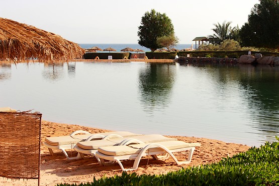 Есть в отеле и искусственное озеро с подкачкой воды из моря, для тех, кто не желает плескаться в бассейне с пресной водой и плавать с рыбами в Красном море, опасаясь порезать ноги о кораллы. Тем более, если учесть, что отель рассчитан на 1200 человек, желающих искупаться в озере с морской водой и песочным дном, будет не мало.