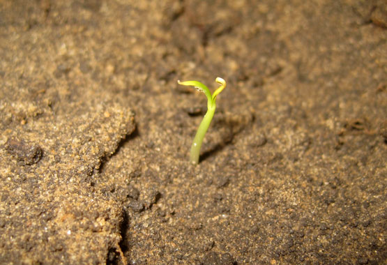 На днях в горшке взошёл перец, семена которого недавно посадил в землю. Решил фотографировать весь процесс роста растения до момента созревания и сбора урожая. Думаю, что спустя некоторое время будет интересно посмотреть, во что превратится этот маленький росток домашнего перца “Огонёк”