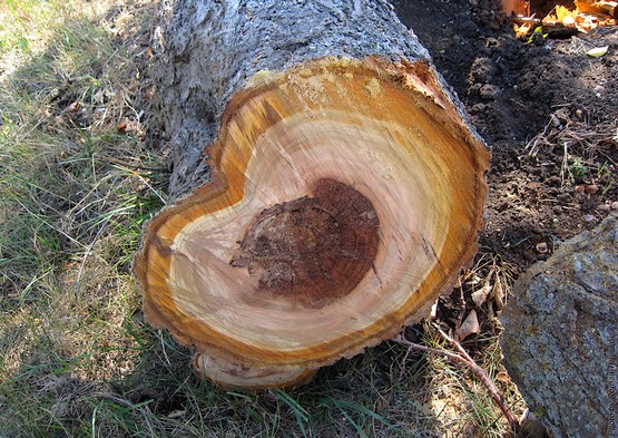 Ниже фотография, которую опубликую для тех, кто желает узнать сколько лет росла эта абрикоса. Как известно, возраст дерева определяют по кольцам и одно кольцо равно одному году жизни.