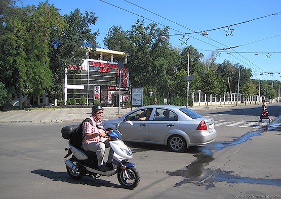 У парка Горького фотографировал забор, которым сейчас обнесли парк. Фотографировал потому, что в девяностые годы, когда я учился в Харькове, забора не было и в помине. К тому же, в кадр въехал мужик на скутере в чудном шлеме, соответственно можно и рубрику люди пополнить.