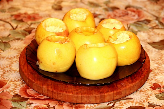 Запечённые яблоки на столе